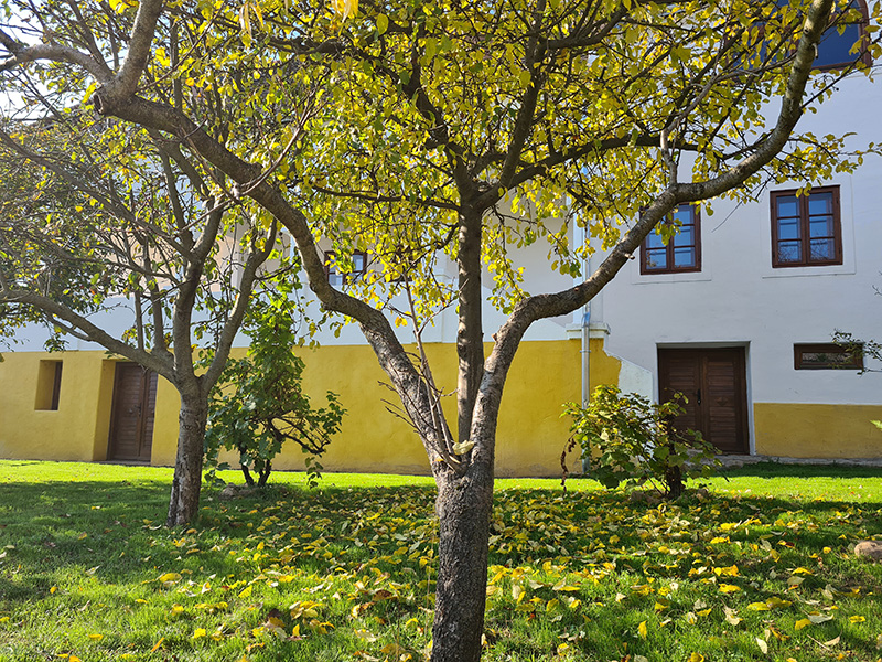 - Biztonságos, zárt, privát és árnyékos kert gyümölcsfákkal.