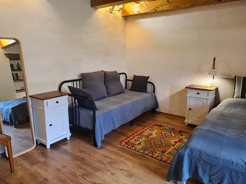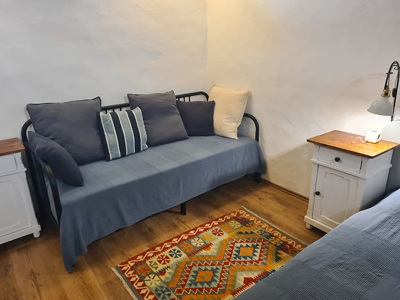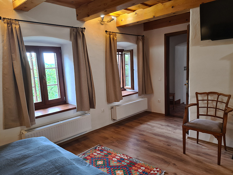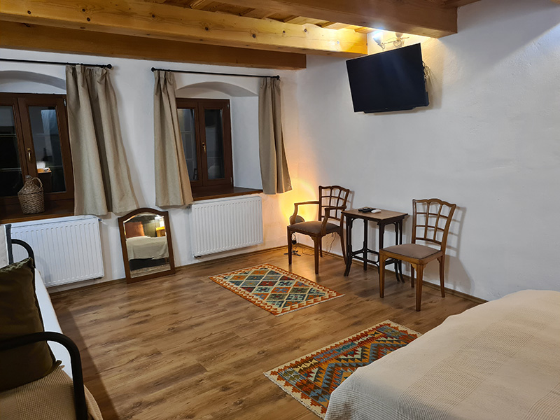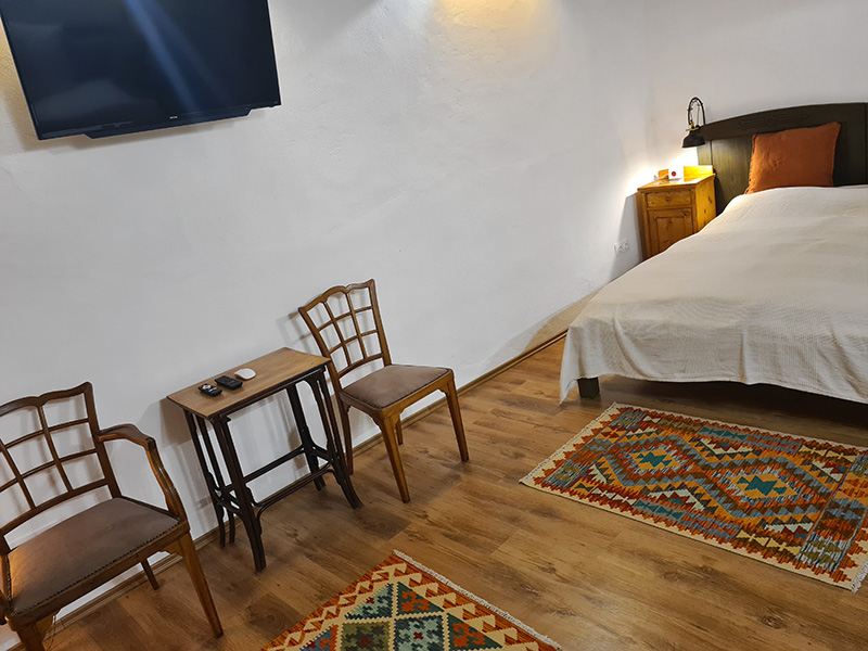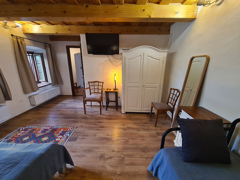 - Mindkét szoba két ablakkal rendelkezik és mindkettőben található sötétítő függöny, 1db franciaágy, 1db kanapélány (2 személyes), 2db éjjeliszekrény, 1db ruhásszekrény, 1db állótükör, 1db TV2.